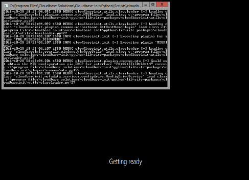 When ready, you can launch a new instance using your new Windows Server image. Once the instance has finished spawning, you can view the instance console. You should soon see the cloudbase-init tool doing its magic.