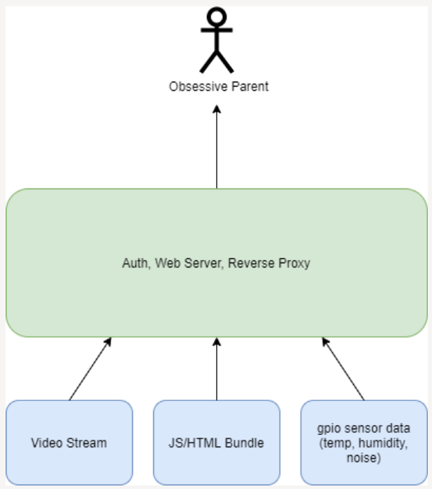 There are a few features that would be fun to implement. Unique codes per client with per client metrics, which would necessitate some sort of database. Rust has an excellent ORM called Diesel, which I played with and it would be a great fit for this. I would also like to purchase a robust gpio sensor kit so I can monitor things like temp and humidity, and then in turn develop a service to communicate that information securely through my reverse proxy. Finally, I would love to deploy the different components onto separate Pi-Zeros so that the camera could be placed in a spot with an excellent viewing angle while the temperature sensor could be placed closer to the baby and away from the hot IR LEDs. The decoupled nature of the individual services meant they could all be deployed independently while still being served through a central hub.
