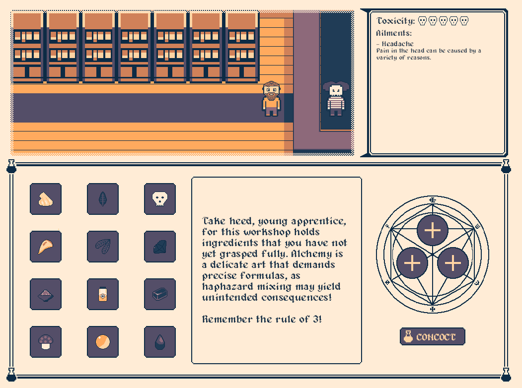 Play it here: https://tsarbomb.itch.io/alchemists-apprentice
